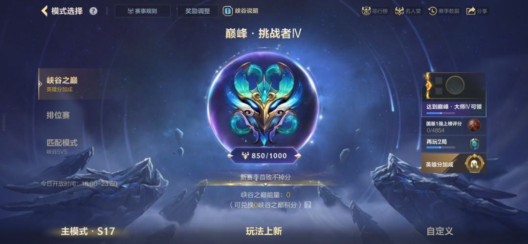 首先,我们改进了峡谷之巅的段位,使排位进度一目了然,在和其他对手竞相冲击巅峰时,召唤师可以更容易了解和追踪自己取得的成就。根据召唤师表现,增加能量,能量转化为积分,表现越好,峡谷之巅上分越快。
