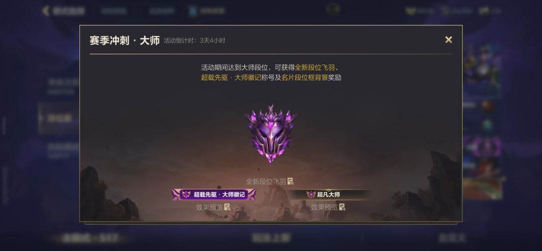 守护之星的上线,也代表着新的排位赛季将正式开启!排名赛季的伊始往往是最激动人心的时期,人人都摩拳擦掌、准备冲击顶峰。为了鼓励在赛季初就登顶的召唤师,我们特别推出了早期冲段奖励。在活动期间达成“超凡大师”段位的召唤师,可获得闪耀的段位飞羽、专属称号和独特的名片称号背景。