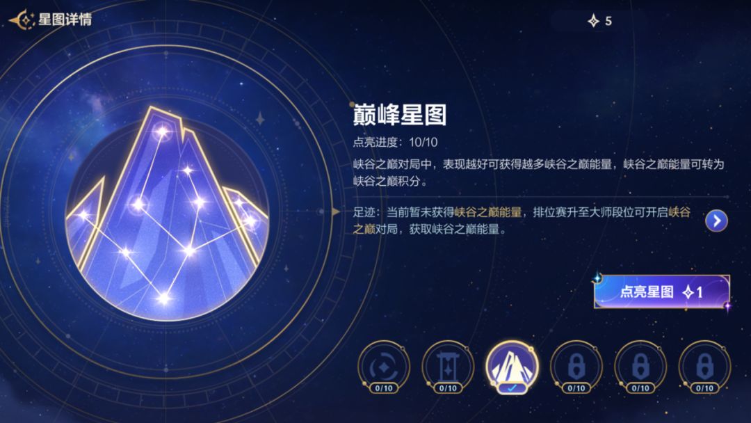 奖励星图、巅峰星图、守护星图会在6.1版本上线时开放,而后三个将在欢乐之星完全充能后解锁。每个星图都对应一个特殊奖励进度,完全点亮一个星图就能解锁一份奖励。