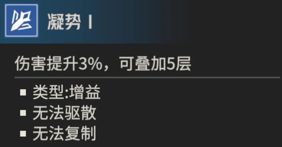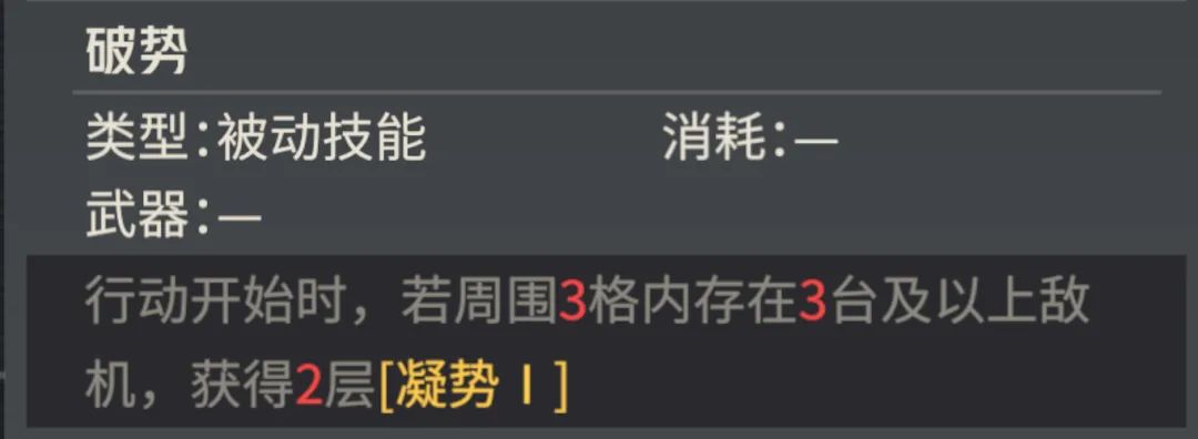 首先艾达这个天赋就很有意思,以积累“凝势”buff为核心来提升伤害,且积累到5层后可以立刻获得3AP和临时的AP上限提升,并且发动再行动,而3潜能后开局便能拥有2层“凝势”,且还有定向回复AP的能力。那么考虑到艾达轻甲格斗家的定位,她在每回合内击杀或攻击多个敌人也是常有的事,所以每回合触发一次5层“凝势”的回复AP和再行动效果也不是什么难事,更何况艾达还有一个类似于明日香的群体瞄准技能。