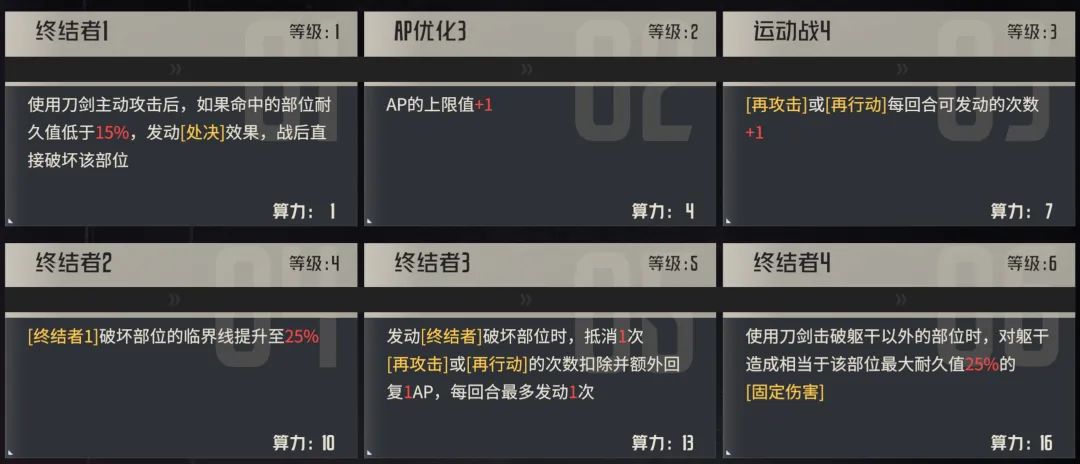 然后艾达的γ1区和奥菲利亚是类似的,γ2区则可以进一步提升“凝势”的爆发力和增伤效果,且16算力上限还能提供一个凝势回复5AP+最高20%终伤提升的效果,果然强无敌的机制设定啊......