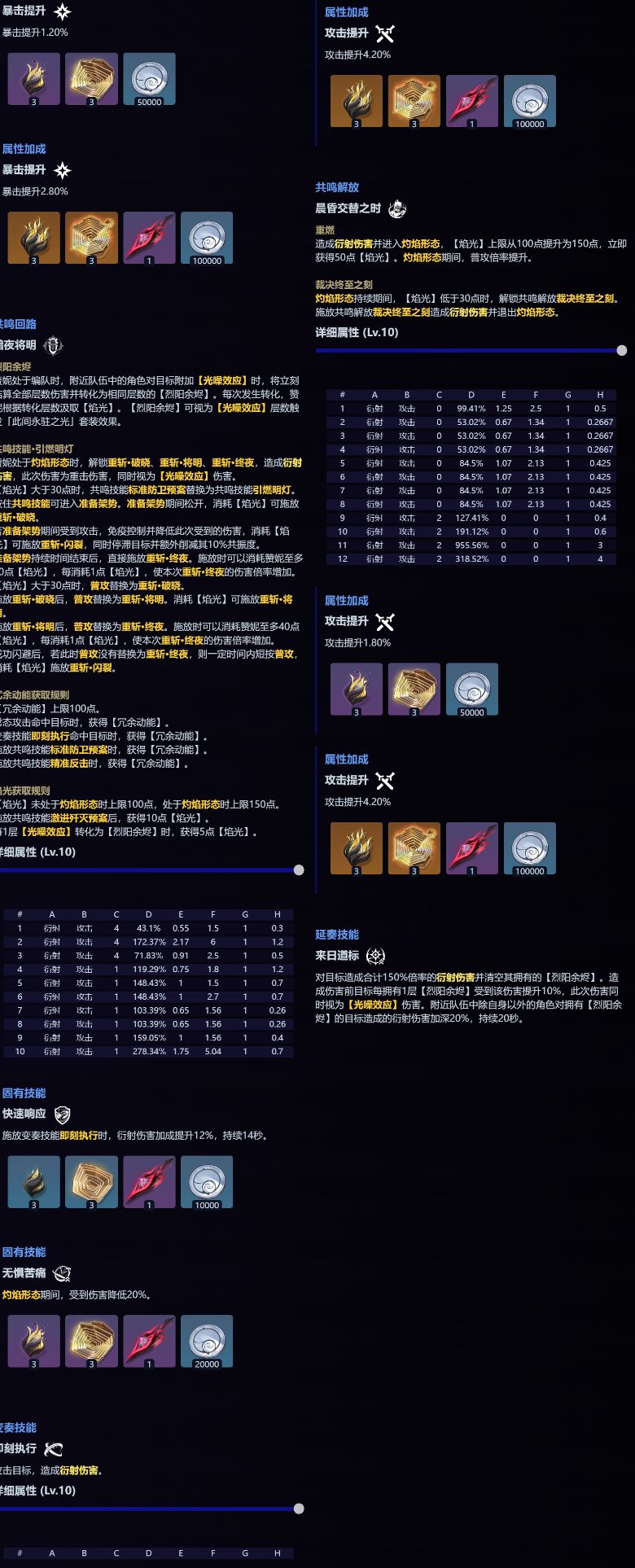 攻击提升12%。施放共鸣解放时,自身造成伤害无视目标8%防御,同时造成的【光噪效应】伤害加深50%,持续14秒。