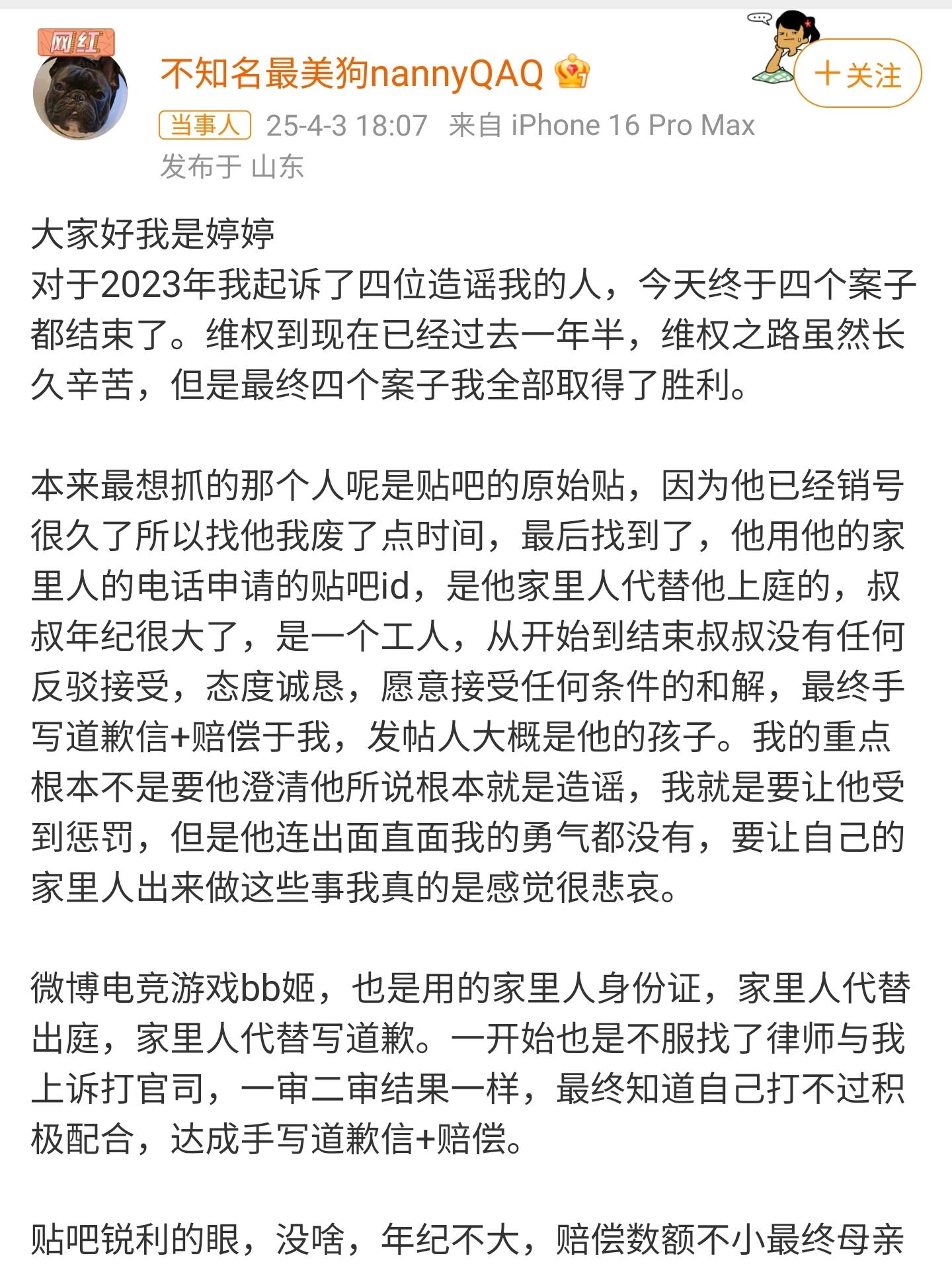 就在昨天Uzi妻子婷婷公布了起诉结果,四个关于她名誉的案子全部胜诉了。