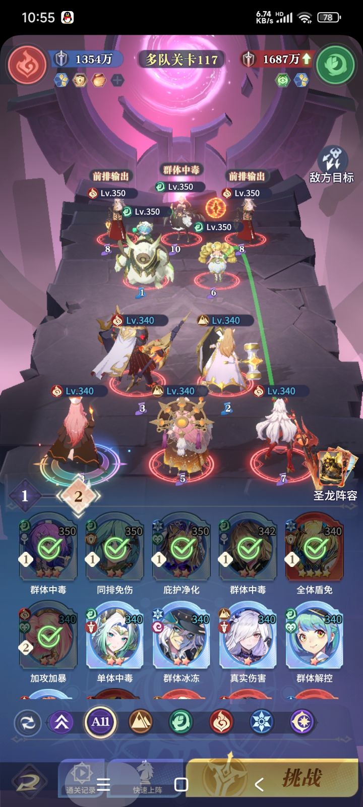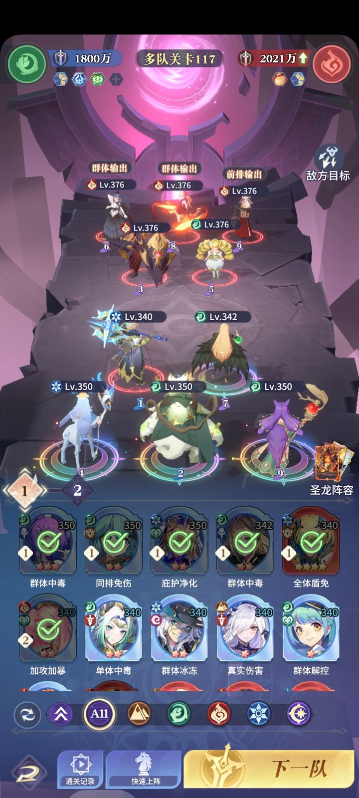 因为二队的属性低,这时候就需要坦克的减伤技能把对面的输出拉到和我们同一水平线,能吃的住,等到大爹起飞🛫