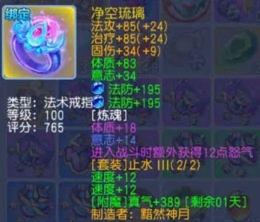 基础属性:戒指的法术攻击、治疗能力以及固定伤害均达到了满值,堪称标准的“三满”神戒。