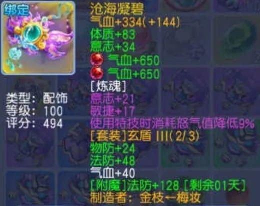 炼魂属性:体质加18,敏捷加18,说实话,属性稍微低了一点。特效是6%的神佑,整体来看,炼魂还有很大的提升空间。