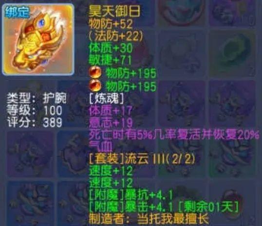 附加属性:在附加属性方面,护腕提供了体质和敏捷共计101点。这个属性表现稍显不足,因为全满的属性是117点。如果对于输出或封印职业来说,追求极致属性可以考虑101点的单加属性,但对于治疗职业而言,应尽可能追求全满的附加属性。