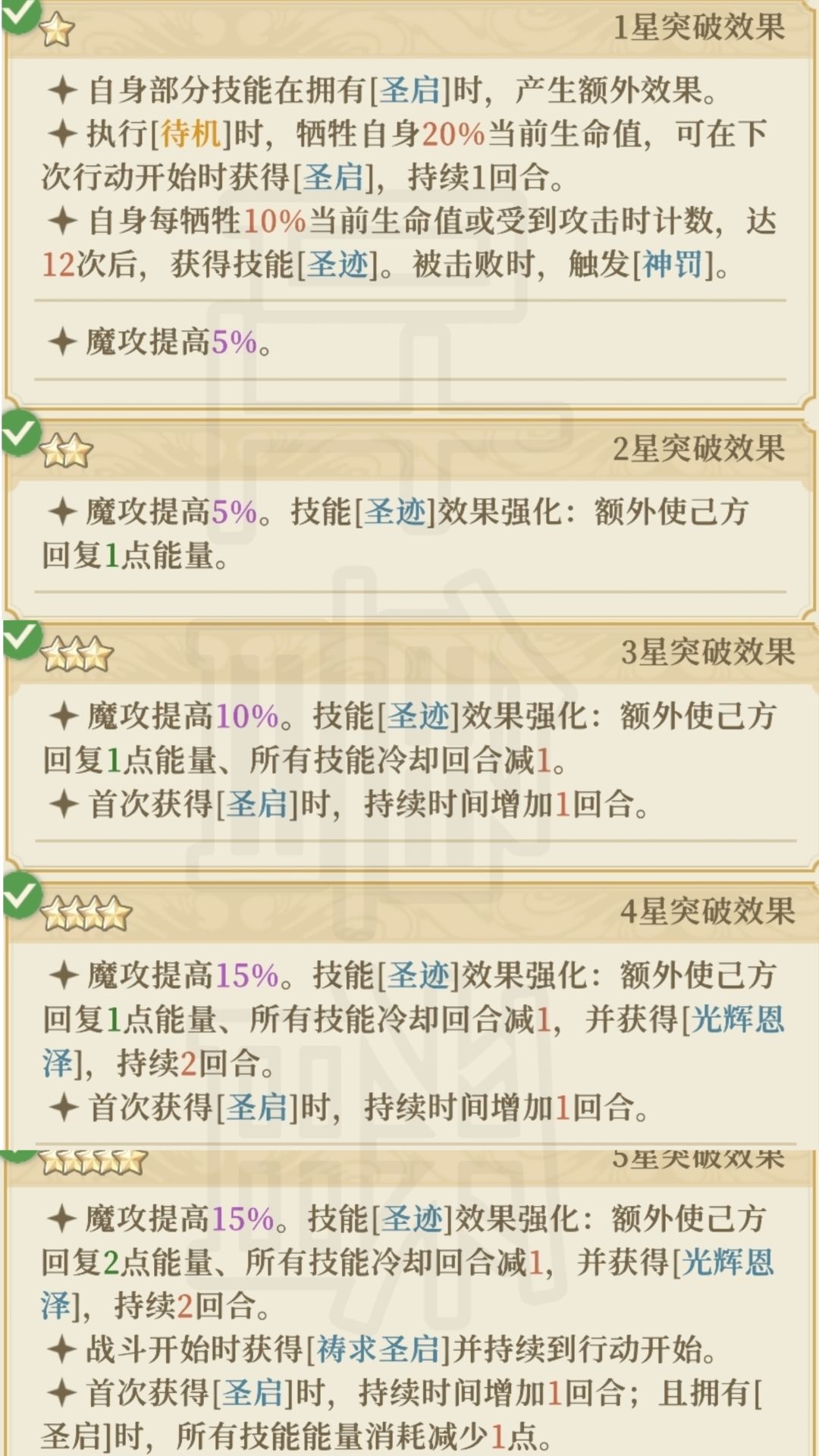 4、个性80%的加强是围绕【圣迹】,5星可以减少能量消耗!