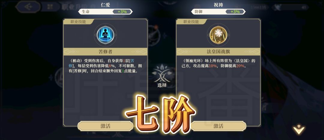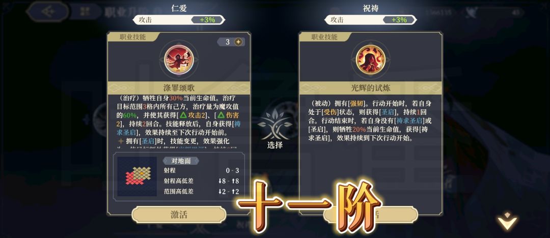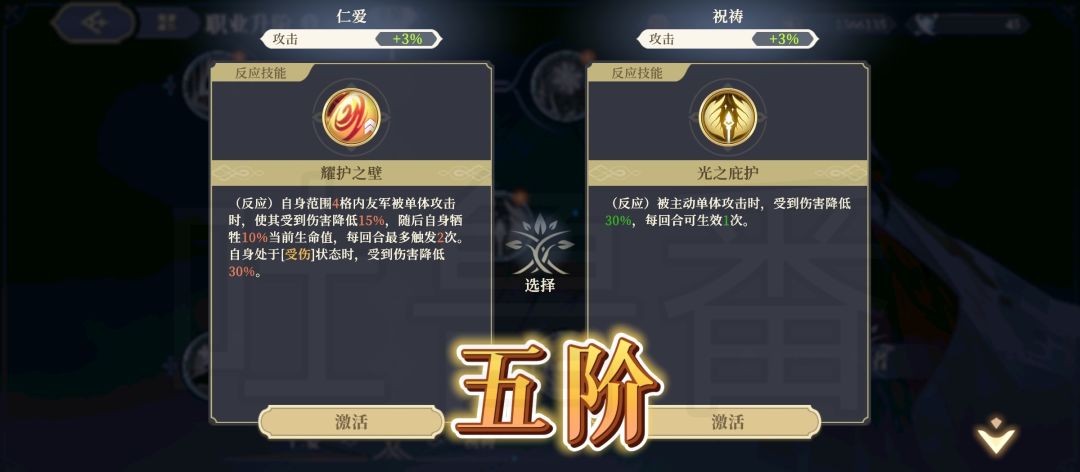左边是大范围回血+攻击2+伤害2buff+光辉恩择,并且获得祷求【圣启】