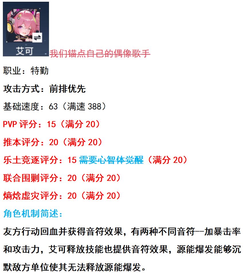 大家好啊,这里是雨宫,本期攻略给大家带来更新版的艾可培养方向,聊天扣群请看个人主页