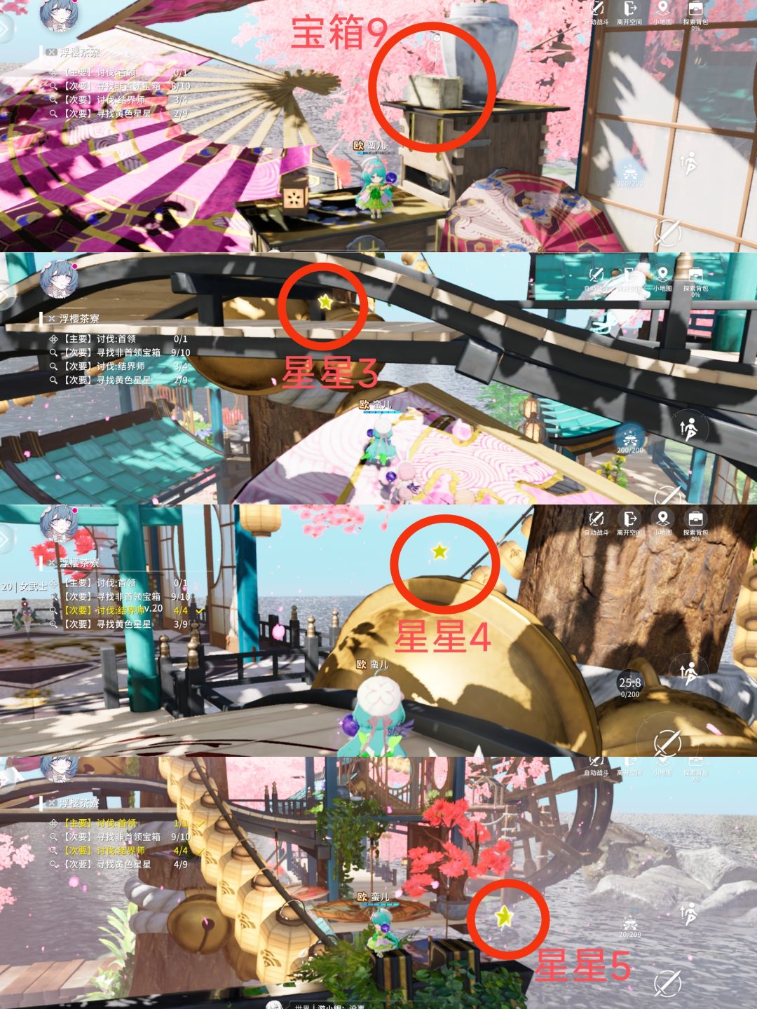 宝箱5:拿完星星不要走,视野往左边转,能看见宝箱位于石头上,可直接开启。