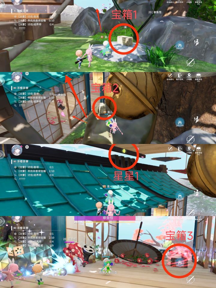 宝箱3:有一只章鱼怪镇守宝箱,将其击败即可开启。