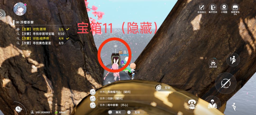 隐藏宝箱:位于中间大树的最上方,树干最上面的分叉上(在宝箱10的上面)