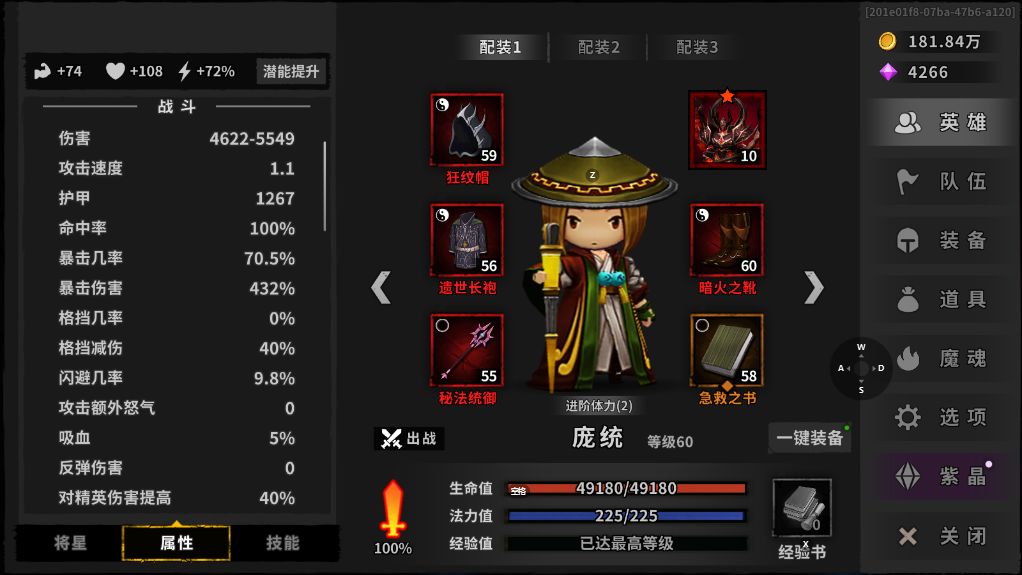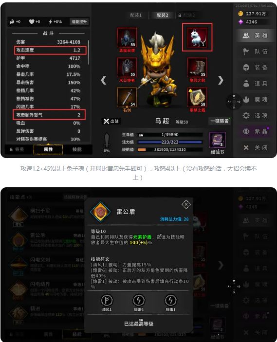 马核心要求:开局出手速度比黄忠快(1.2以上攻速+45%以上兔子魂),攻怒4以上,满足以上要求后堆肉/减伤即可