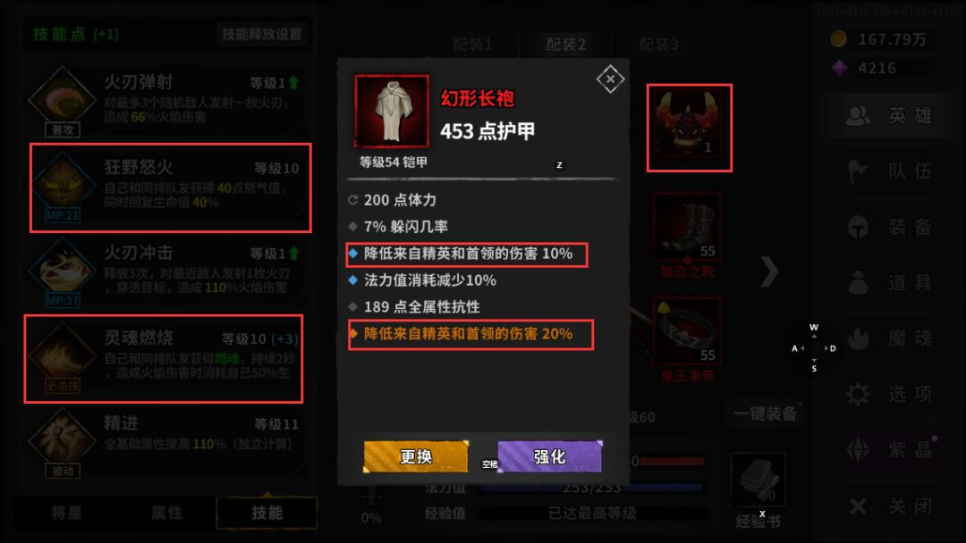 装备大词条选择: 武器500%爆伤/血魔,副手怒5,防具一条疯狂+两条精英伤/爆伤/火伤(暴击不够70的就打14暴击)