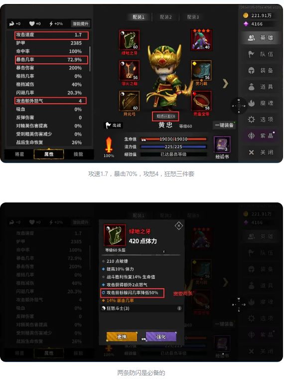 套装选择:狂怒斗士3件套+无尽源泉2件套(无尽套非必要)宝石选择:副手暴击或者体力,防具体力(非必要)