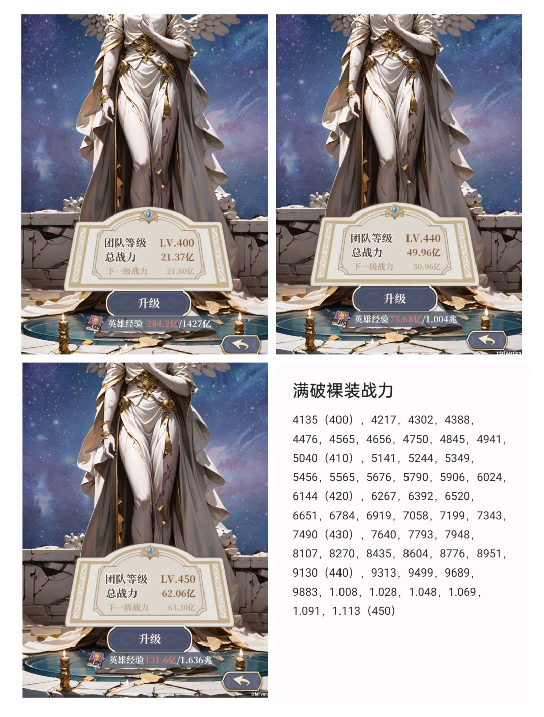 1,敌我数值差距太大。战力(攻血)提升靠团队等级,等级越高提升越大,350开始很难升(具体如图,后面你就肝吧,一升一个不吱声),英雌常规输出刮痧、脆皮身板。