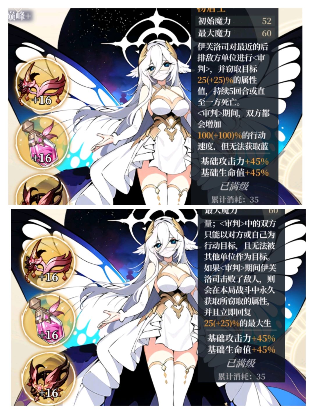 2,蓝量,战斗中显示为英雌右侧一例,10点为一星,每10点充满一星。蓝差1点都不会放技能,放技能占一次行动且清空蓝量。技能主动低被动一等,伊芙就是靠的主动转被动凌架于众卡之上