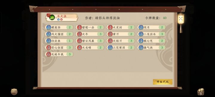 后手理想情况:一费雷霆,二费牛,三费火焰刀清对位怪,四费看手牌有什么,有剑客和火龙喷就打节奏,有截心和闭月就反制尤其是场面优的情况,五费摄气,六费无敌牛。