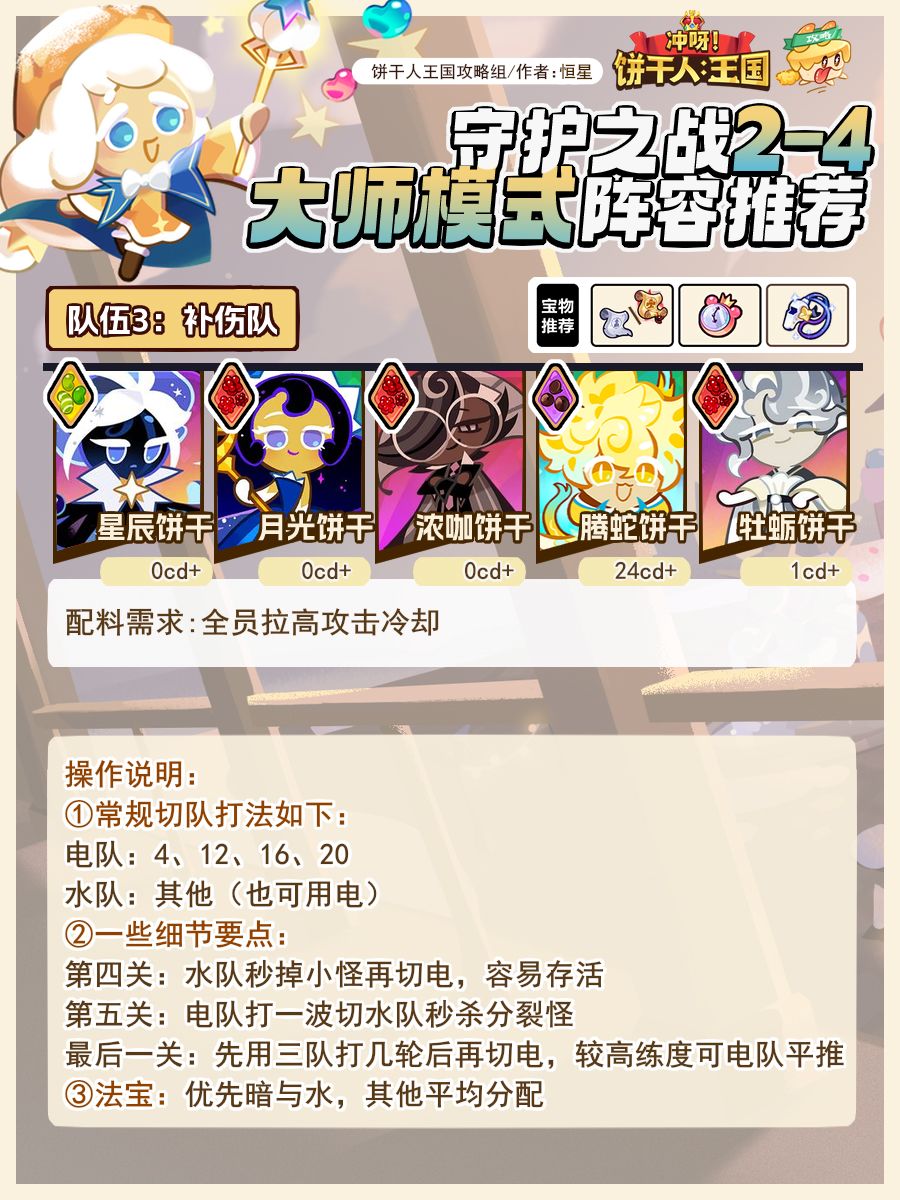 守护之战2-4大师阵容推荐,末尾关卡推荐3个队切换通关。