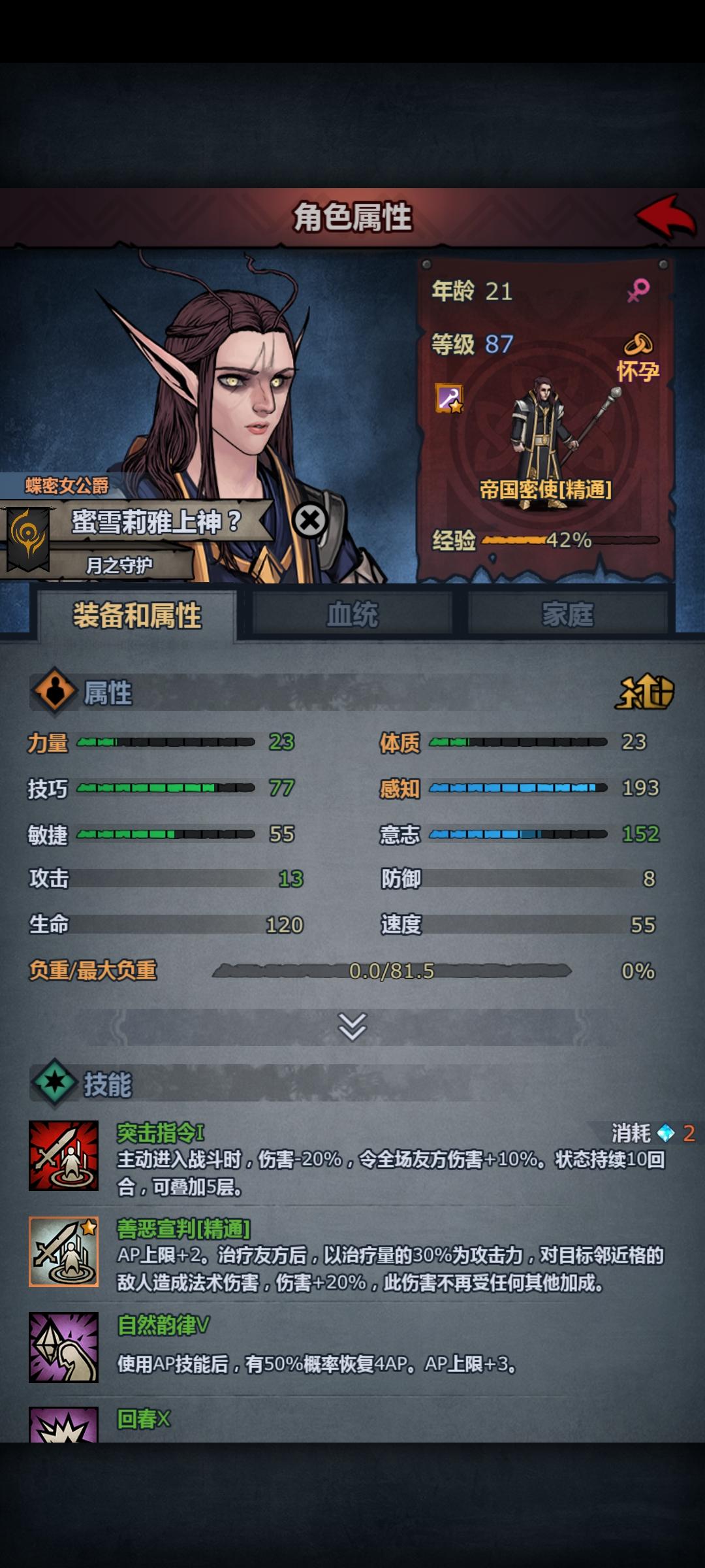 我这么整之后 看技巧已经77技巧了。意志也有152了。