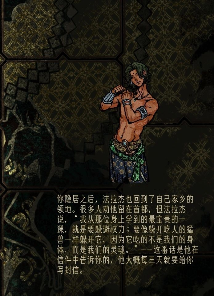 从第一次玩到现在,最希望的就是主角的好朋友和家人获得一个好的结局,我让他们远离政治中心,用自己喜欢的生活方式去生活。