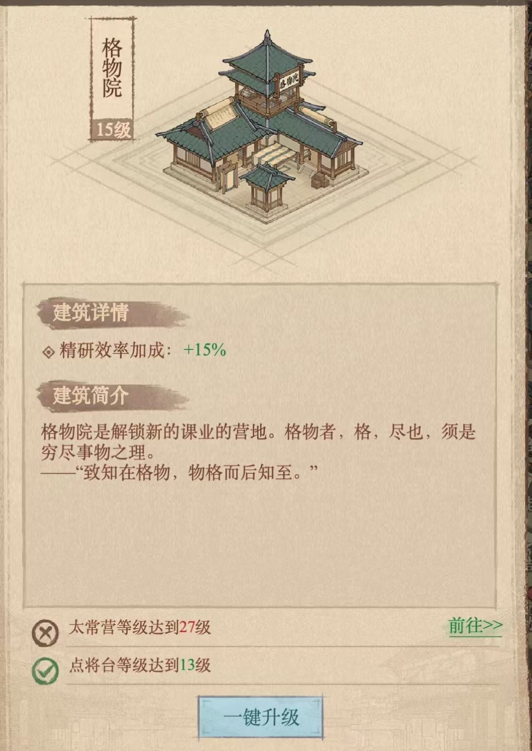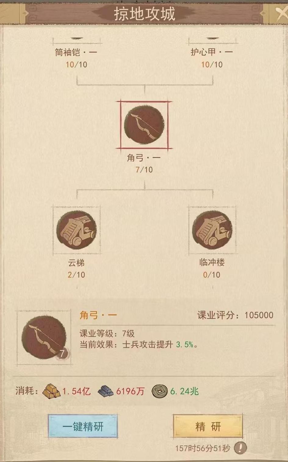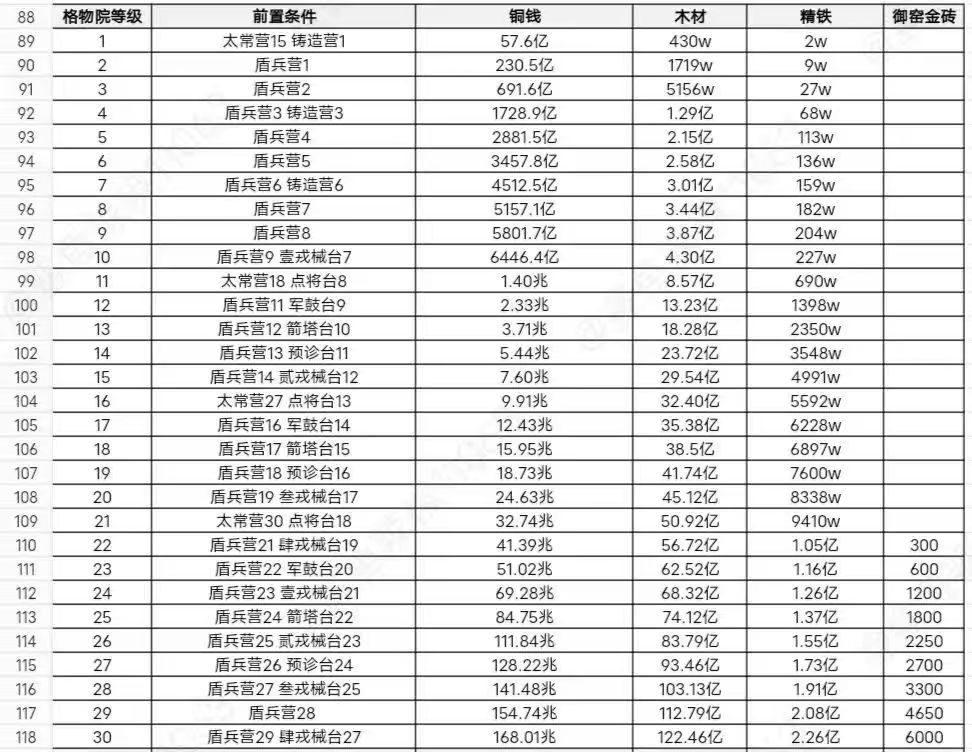 城墙 / 格物院 / 太常营 / 折冲营→优先升