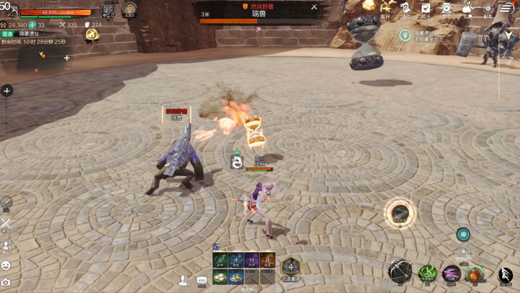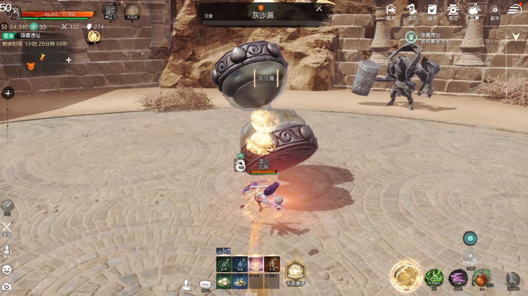 击败守护瑞兽×2,拾取掉落的金色小沙漏。