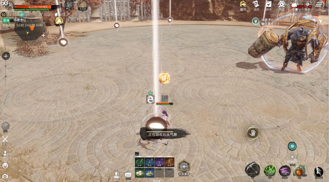残血追加机制:需拾取发光石子破除护盾,集火输出。