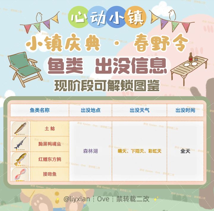 【心动小镇】春野令 4种限定鱼类 出没信息
