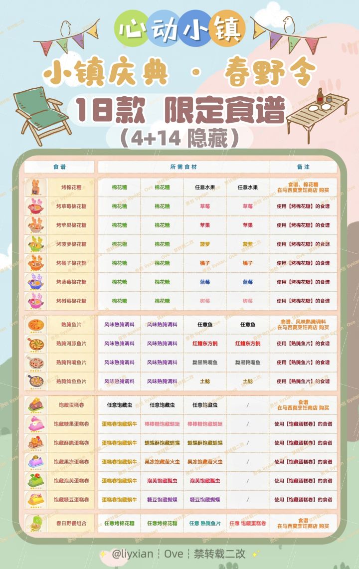 【心动小镇】春野令 18款食谱 全攻略