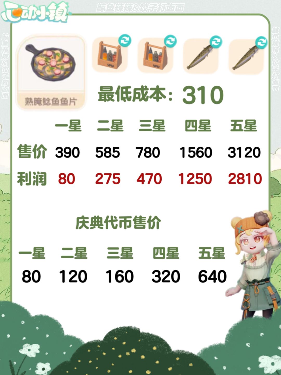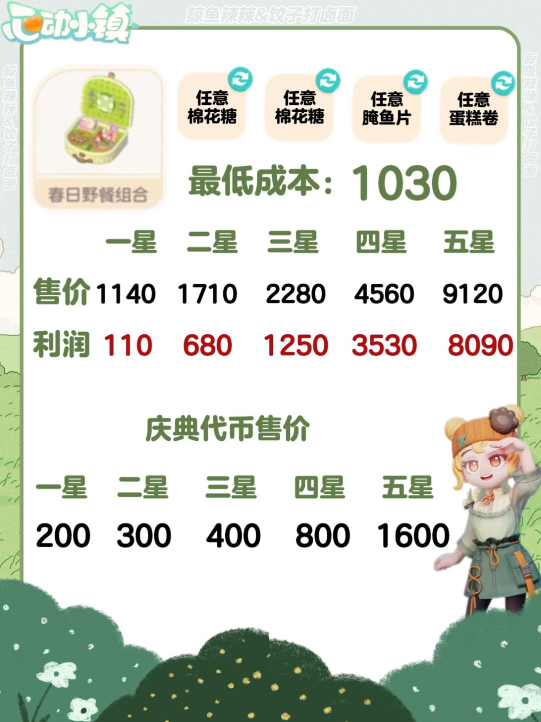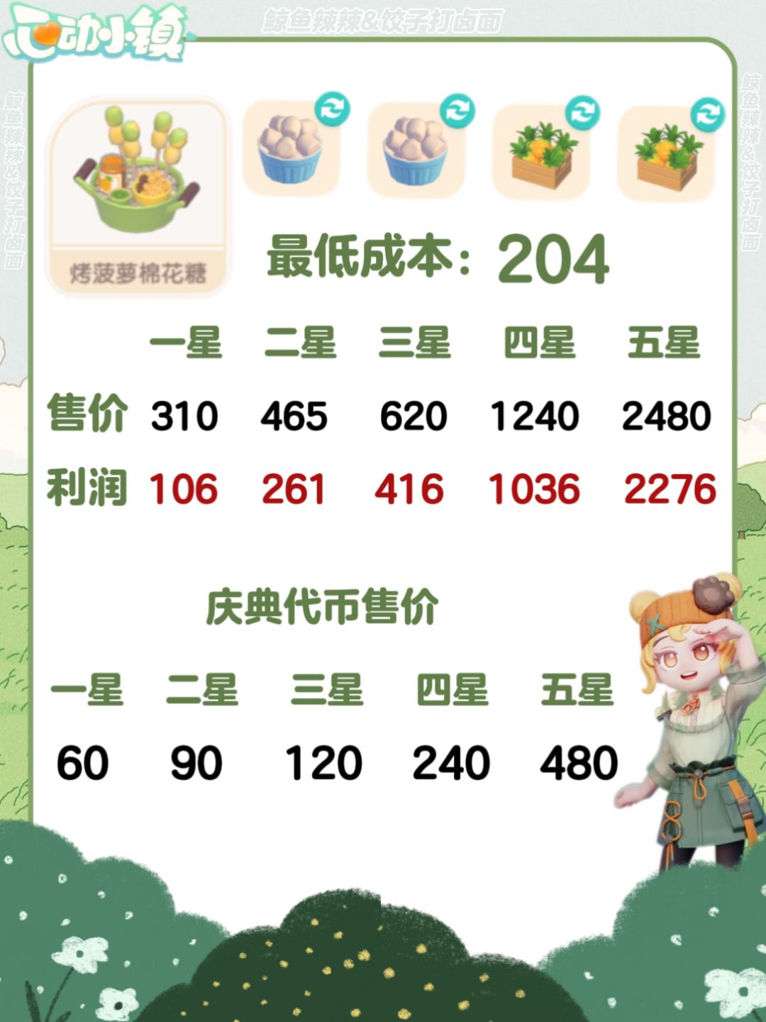 心动小镇-春野令食谱、售价及利润