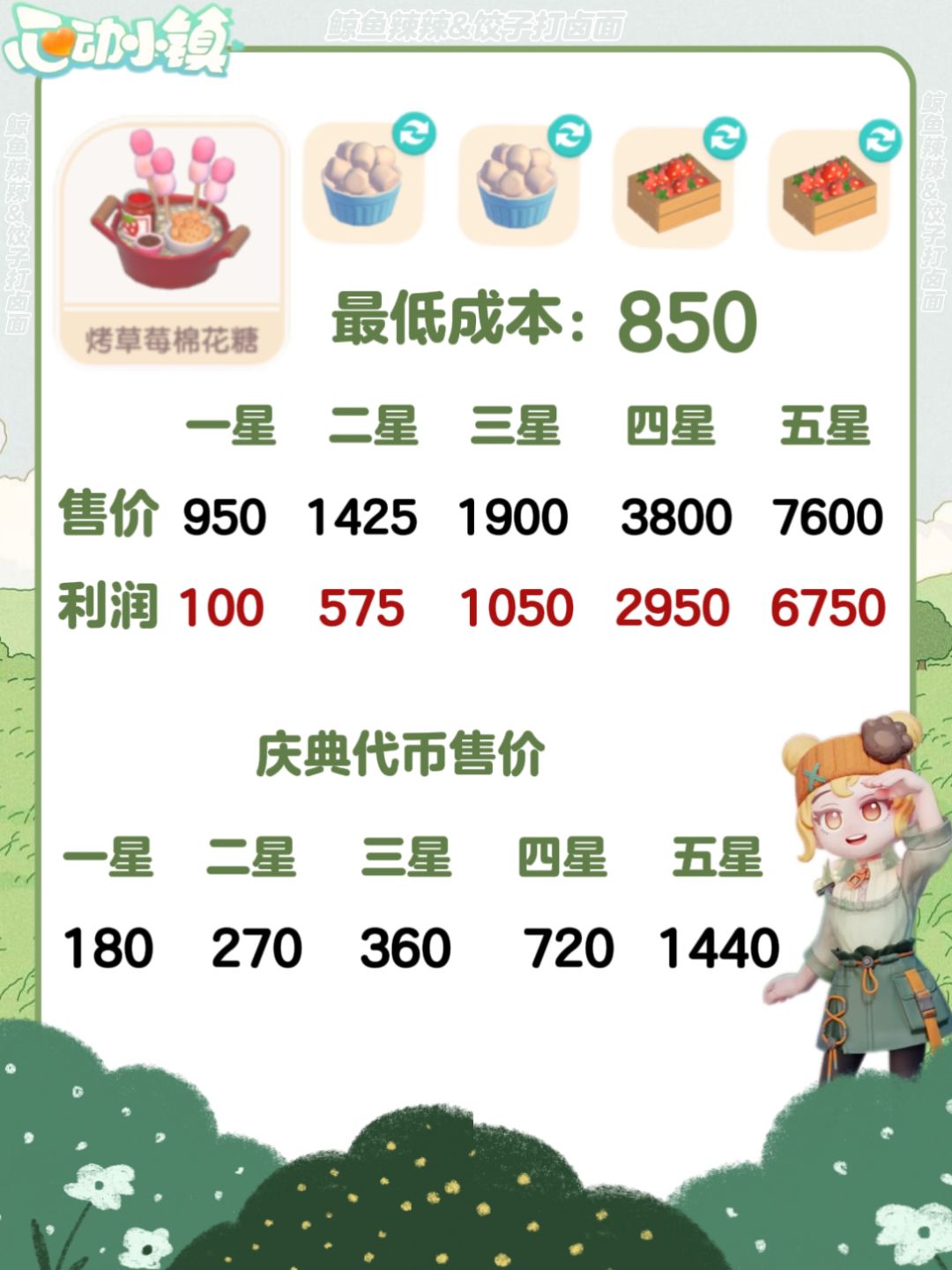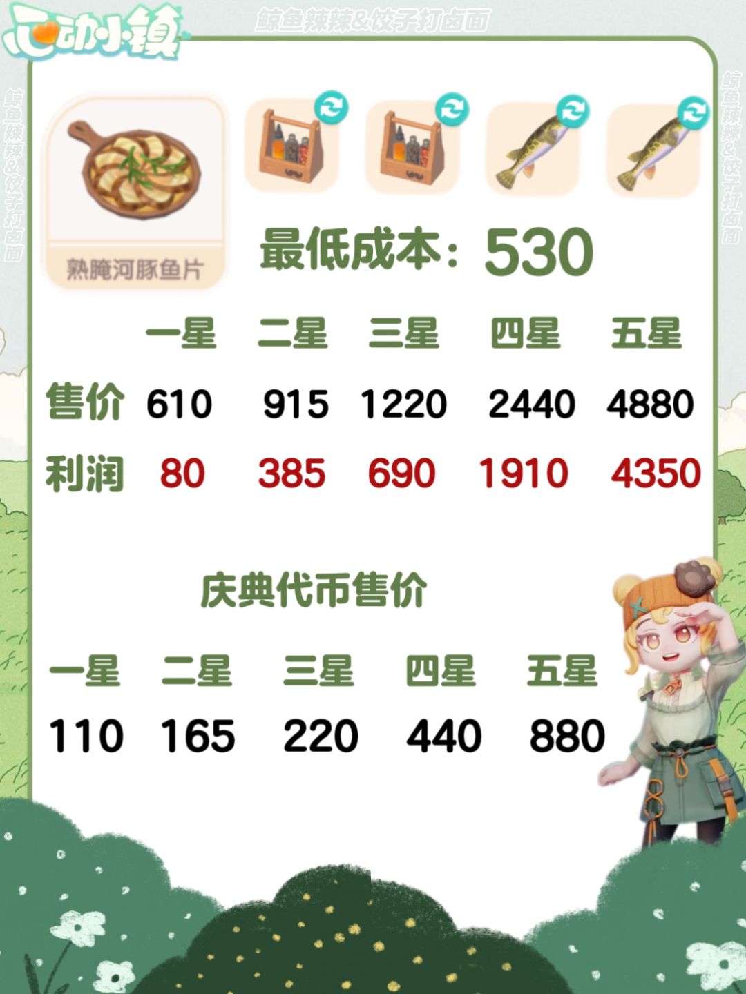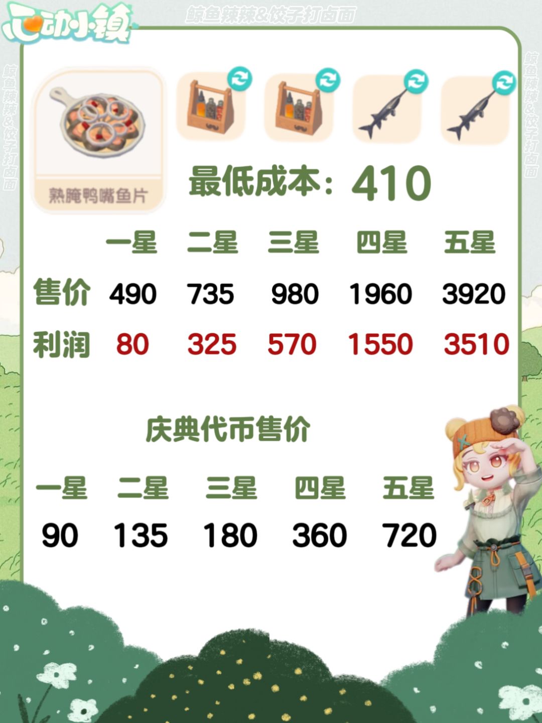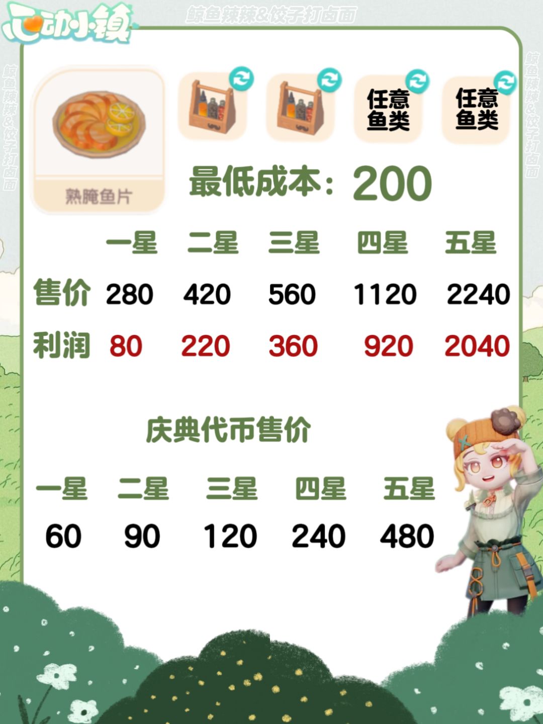 心动小镇-春野令食谱、售价及利润