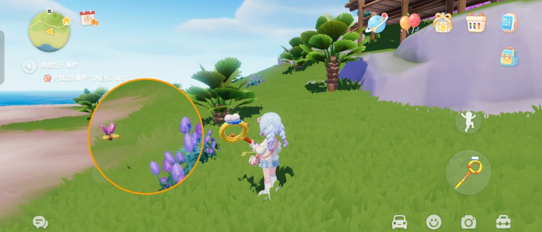 目前[糖豆饱藏蝴蝶]很多友友都没有抓到,在花田紫光海滩(就是以前椰子树那一片)的紫色花丛上!