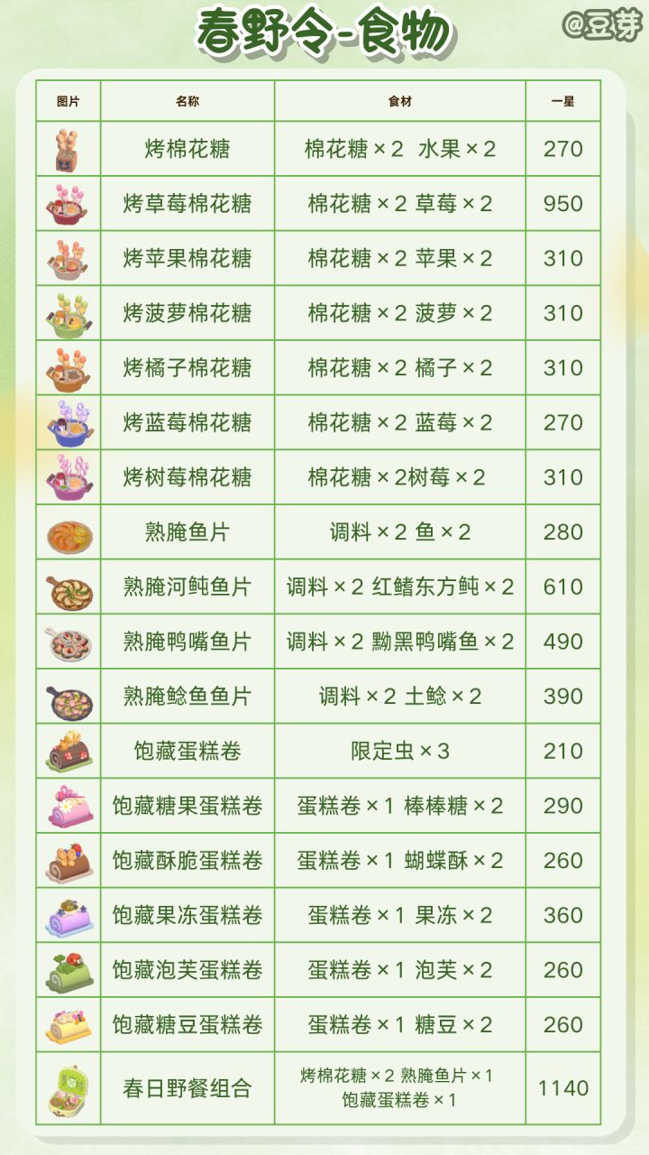春野令-新增食谱+售价