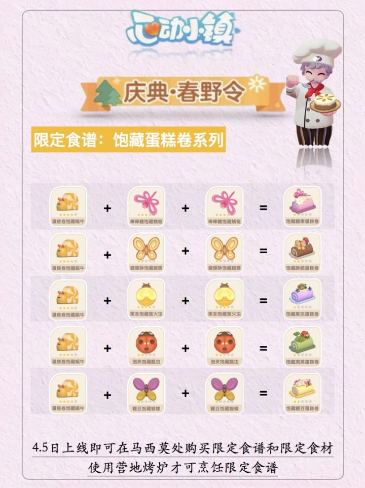 心动小镇春野令限定食谱:饱藏蛋糕卷系列 攻略