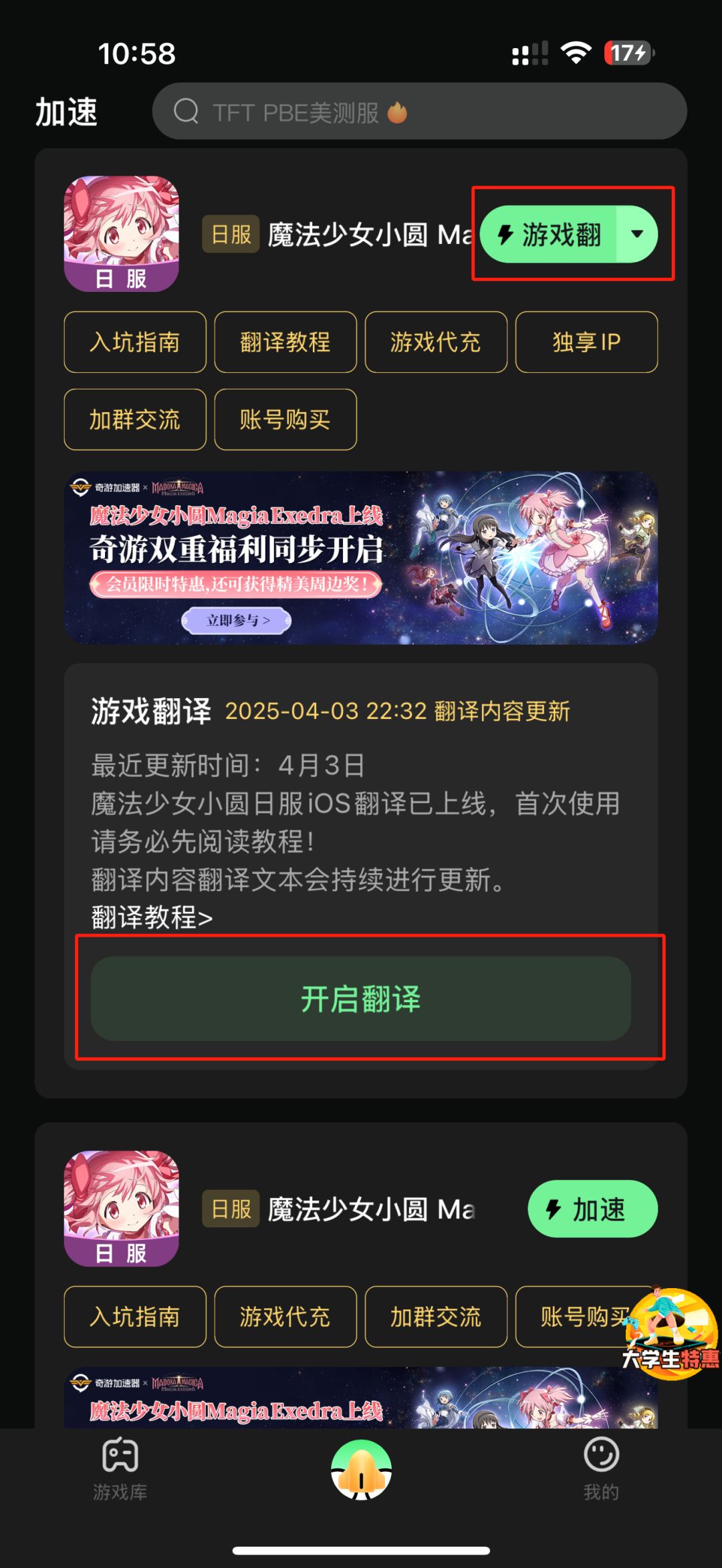 1、奇游内搜索【魔法少女小圆】找到翻译教程