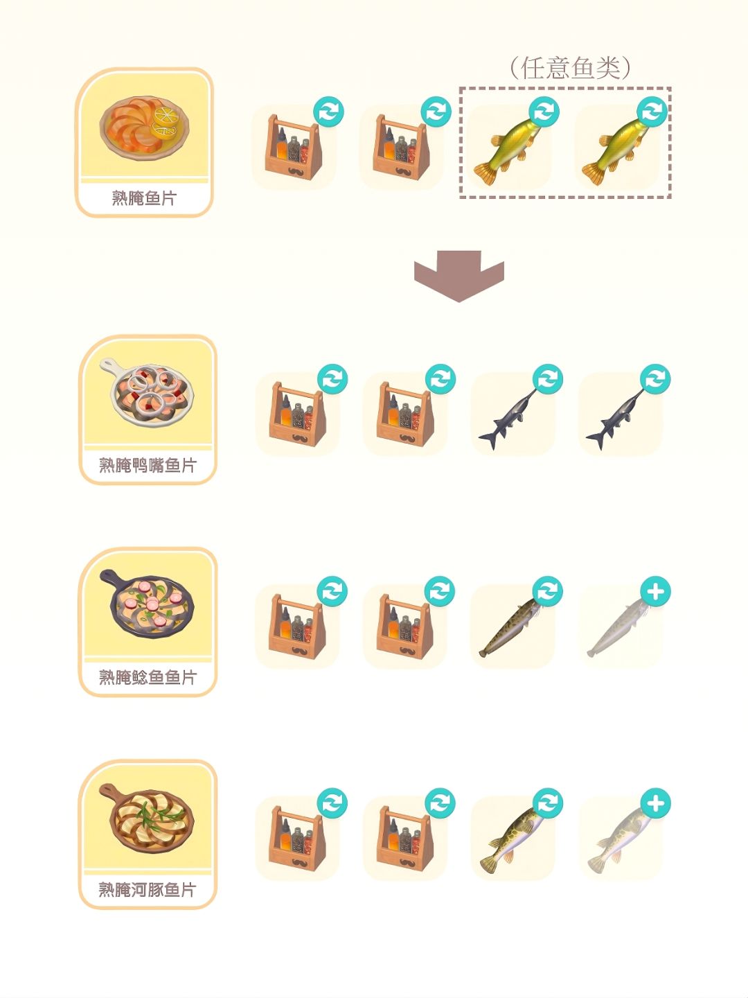 食谱、部分食材在马西莫商店购买;限定灶台制作书是潮流手册等级奖励/也可前往花田-草原湖附近的公共灶台制作。