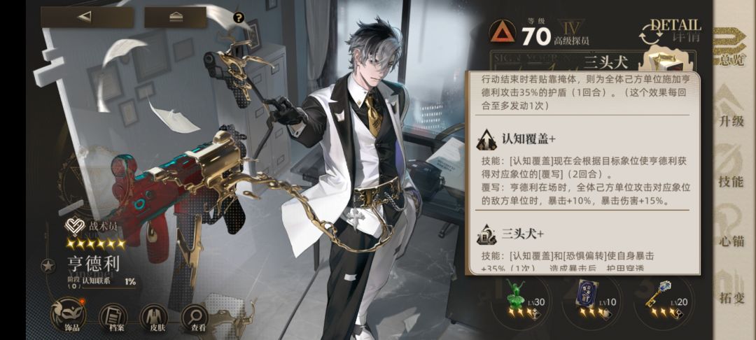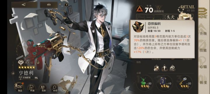 1技能是核心技能,机制比较复杂。首先这是个30初动,也是六星异能/战术第一个30初动的技能,这就奠定了一半的地位,得蓝钥匙者得天下。不过要注意的是,1技能在低等级范围只有3,只有到5级才有30初动和5格范围,所以练度要求不低。