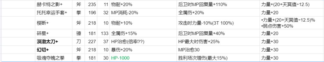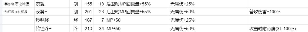 适用buff:力量up/智力up/暴伤up/武器伤up/无属伤up(无属输出适用)/全属伤up/上毒痛+毒痛伤/精神统一(根据MP上限加魔法伤害)/心技一体(根据MP上限加物理伤害)