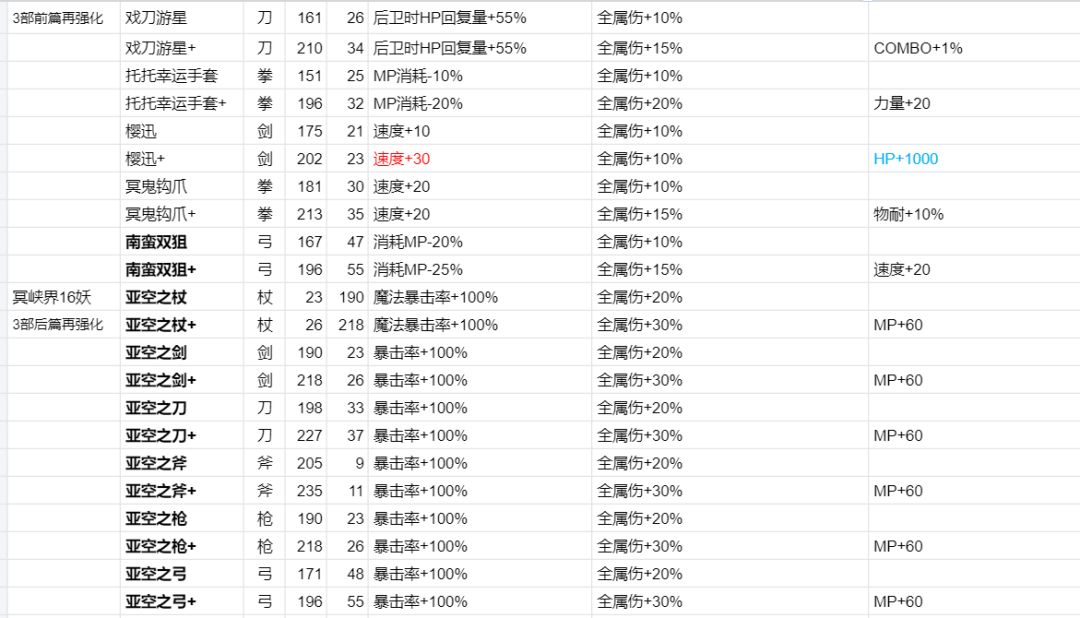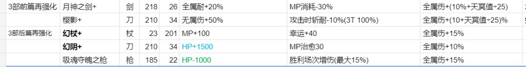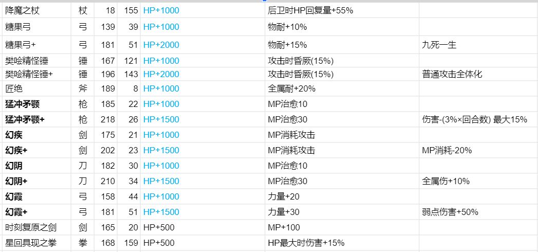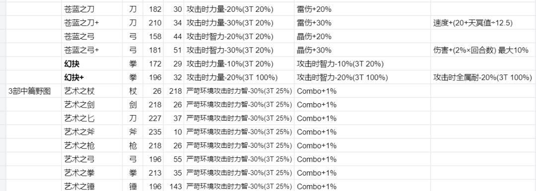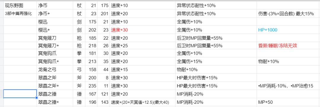 二、相关武器选择(注:武器后带+的表示原武器强化满后在第三部主线再次强化后的效果)
