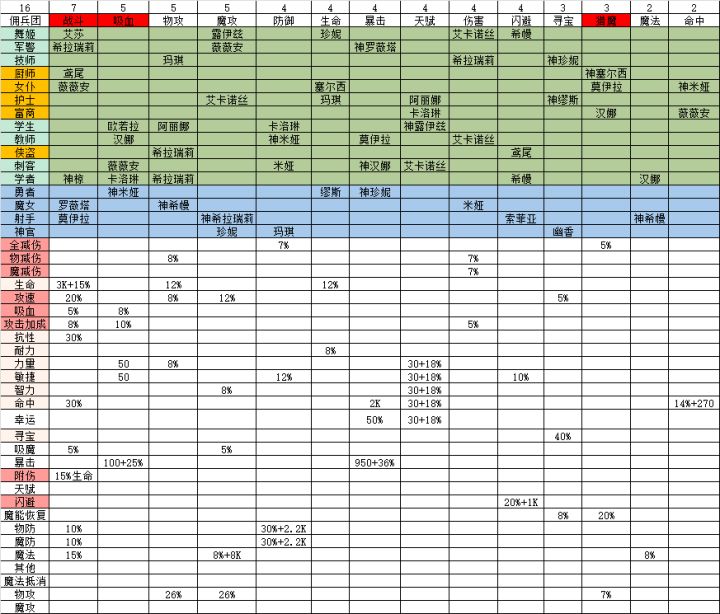 上传的两张图分别是传奇套装、稀有传奇套装的部件构成和主要数据,佣兵团的构成和主要数据。