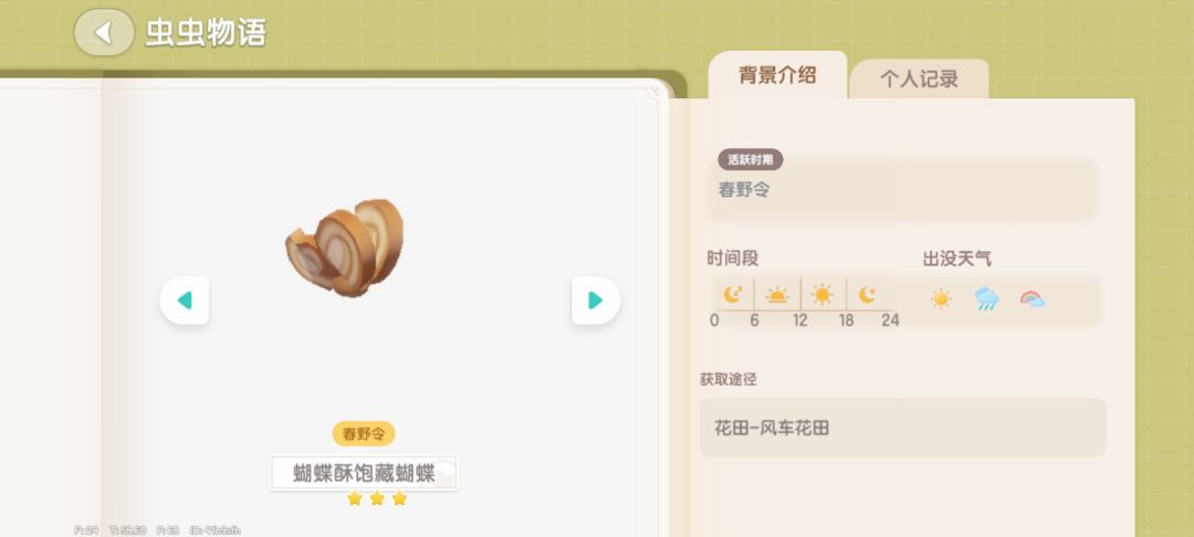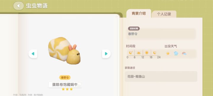 个人捕虫心得:蛋糕蜗牛在上图所以位置都有(为基础食材)