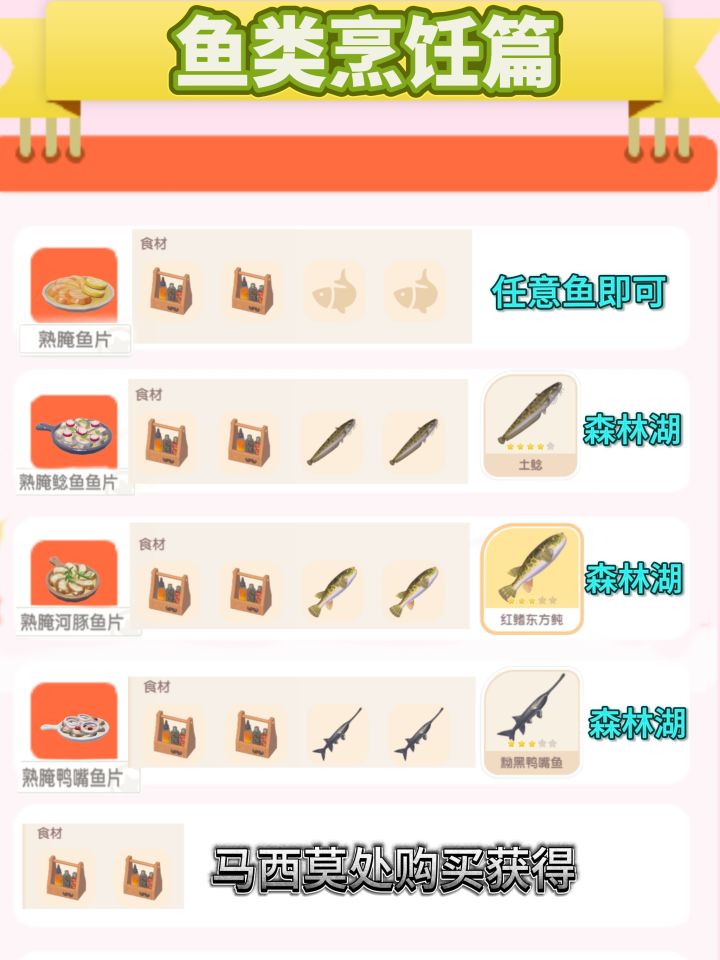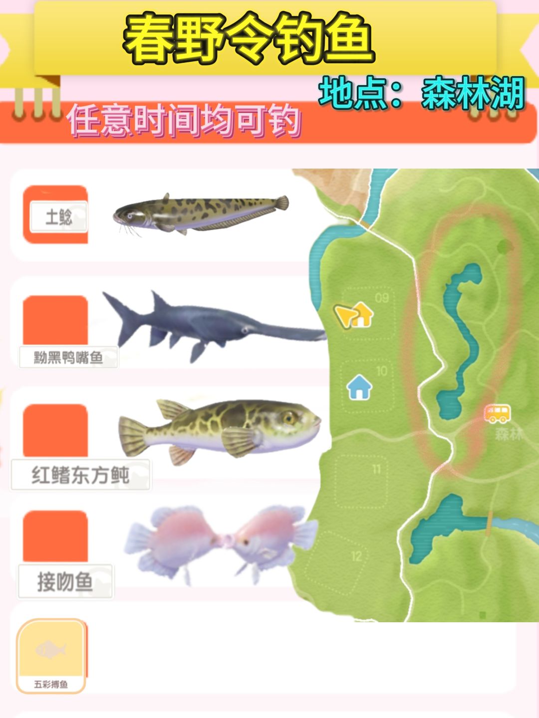 小镇春野令的烹饪食谱,钓鱼位置,捕虫位置