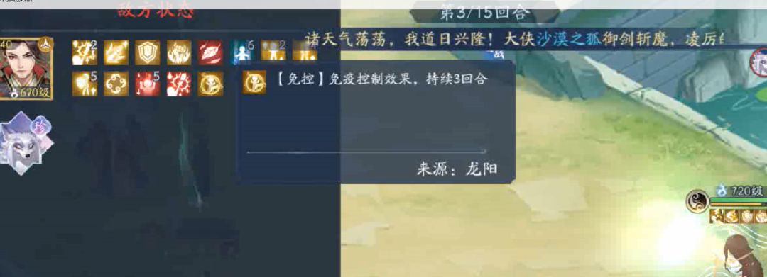 免控不免疫止戈、落叶,但是关于落叶的打断效果我测了很多把只有一把免控生效后被打断,但是龙阳免控只有三回合,不确定是否是免控期间生效