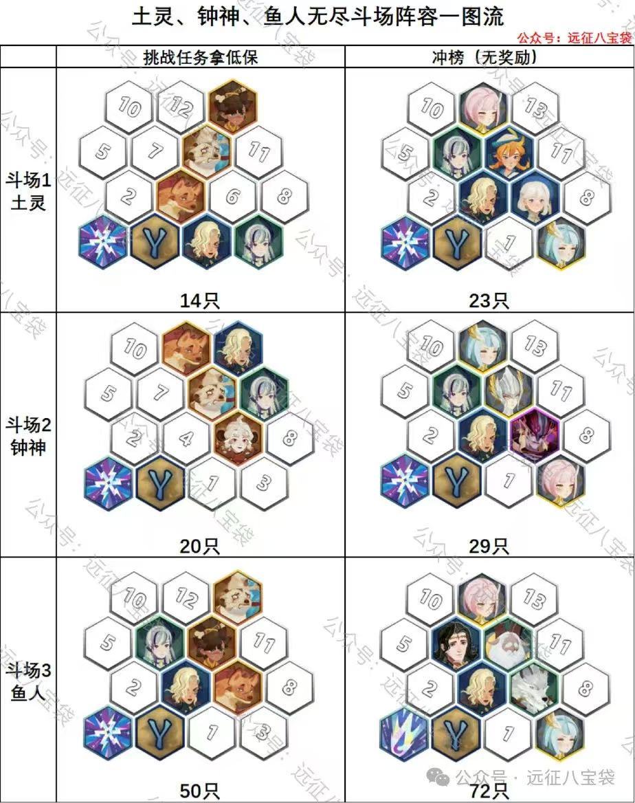 【远征八宝袋】土灵、钟神、鱼人无尽斗场阵容一图流