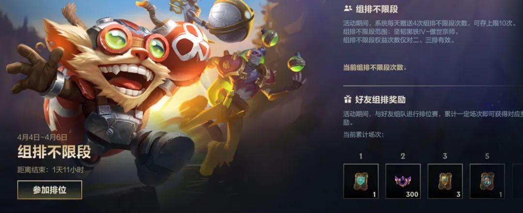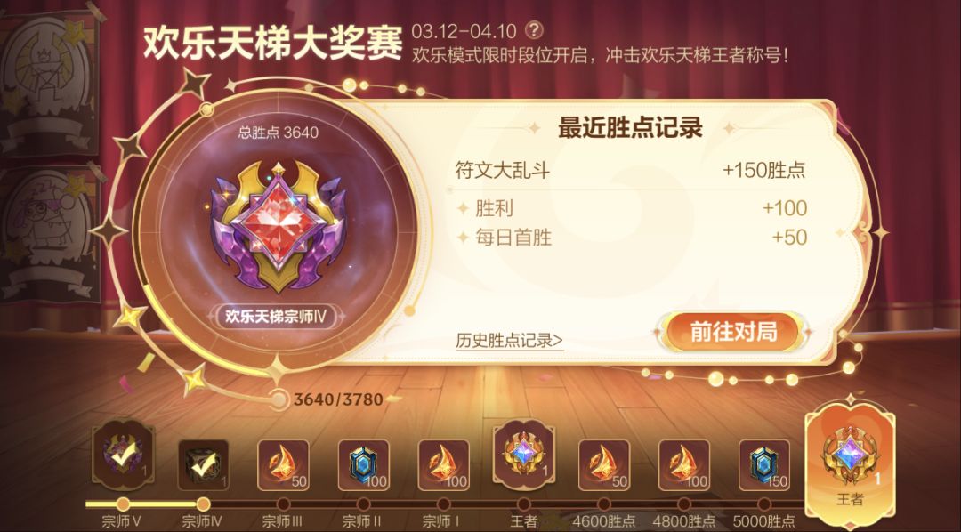 欢乐天梯大奖赛还剩5天!截止至4月10日23:59,召唤师参与休闲模式(极地大乱斗、魔典大乱斗、符文大乱斗、无限乱斗、无限火力、克隆大作战、双重施法、终极魔典、终极对决、双人竞技场、狂野激斗)获取胜点,升级欢乐天梯段位,即可赢得欢乐天梯大师、宗师、王者称号,更有专属头像框-欢乐天梯大奖赛头像框、局内表情-有点东西、表情自选宝箱、传奇图集卡包等超多奖励等你赢~