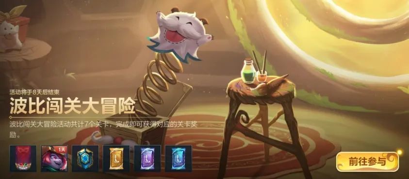 截止至4月13日,波比闯关大冒险火热进行中!活动共计7个关卡,召唤师需逐关进行挑战,难度逐级提升,通过关卡后即可获得对应关卡的奖励。奖励包含传奇图集五星卡包(金)、传奇图集四星卡包(紫)、我是谁?! 波比皮肤体验卡等丰厚好礼,在完成所有关卡后还可获得专属大奖无畏队旗-娱人不愚~