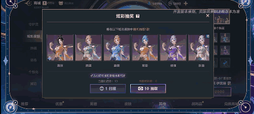 召唤师仍可通过【炫彩抽取】随机获取炫彩皮肤。消耗10张【炫彩劵】可进行一次抽取,从7款炫彩皮肤中随机获取1款。