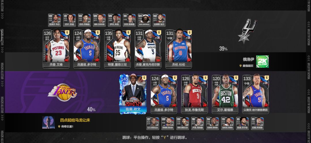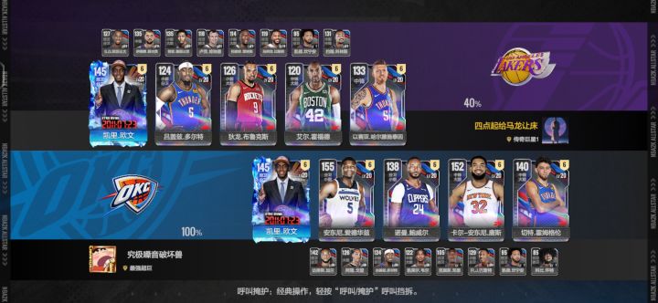 首先尽量不要上有投射但是防守不好的球员,比如肯纳德,就算是库里也最好不要,因为三分空位机会真的很难出,并且防守薄弱的点也容易被电脑一直追着打,2号位我自己用的是多尔特加sga轮着来 3号位有狄龙和墨菲三世,这里如果还要推荐一些平民球员的话,还有约什格林,奥科吉也算是多尔特平替了,总之2、3号位要找有防守 运动能力不错,模型也还行的更好。